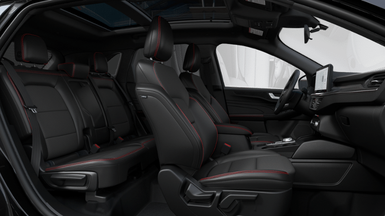 Agate Black Metallic 2025 Ford Escape ST-Line AWD 8-Speed Automatic 1.5L EcoBoost AWD, 3.81 Axle Ratio, 4-Wheel Disc Brakes, 6 Speakers, ABS brakes, Air Conditioning, Alloy wheels, AM/FM radio: SiriusXM, AM/FM Stereo, Auto High-beam Headlights, Automatic temperature control, Brake assist, Bumpers: body-color, Compass, Delay-off headlights, Driver door bin, Driver vanity mirror, Dual front impact airbags, Dual front side impact airbags, Electronic Stability Control, Emergency communication system: SYNC 4 911 Assist, FordPass Connect, Four wheel independent suspension, Front anti-roll bar, Front Bucket Seats, Front Center Armrest, Front dual zone A/C, Front reading lights, Fully automatic headlights, Illuminated entry, Knee airbag, Low tire pressure warning, Occupant sensing airbag, Outside temperature display, Overhead airbag, Overhead console, Panic alarm, Passenger door bin, Passenger vanity mirror, Power door mirrors, Power driver seat, Power steering, Power windows, Radio data system, Rear anti-roll bar, Rear reading lights, Rear seat center armrest, Rear window defroster, Rear window wiper, Remote keyless entry, Speed control, Speed-sensing steering, Speed-Sensitive Wipers, Split folding rear seat, Spoiler, Sport steering wheel, Steering wheel mounted audio controls, SYNC 4, Tachometer, Telescoping steering wheel, Tilt steering wheel, Traction control, Trip computer, Variably intermittent wipers, Vinyl/Cloth Front Sport Contour Bucket Seats, Wheels: 18 Rock Metallic Painted Aluminum, AWD.